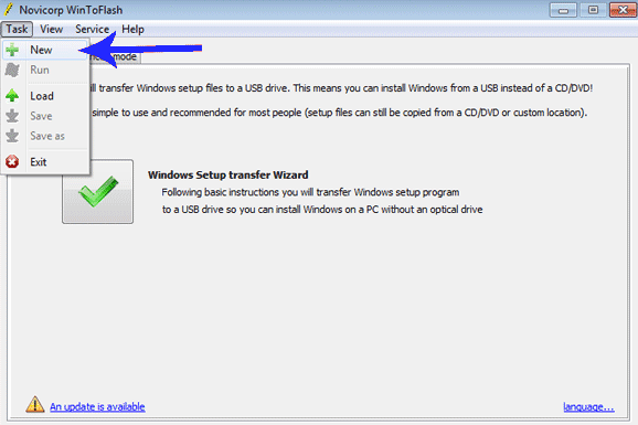 Open up the WinToFlash exe file settled with in the unzip folder and choose the new task as mention within the image below.