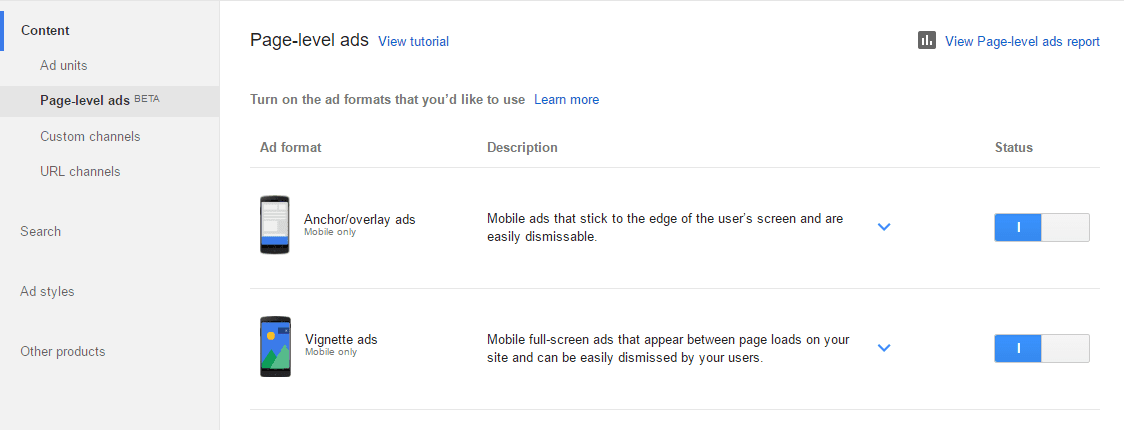 Page leve Ad Format Diabled Yet?
